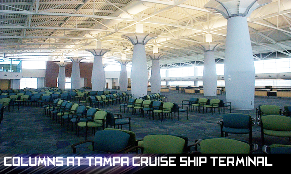 These Columns are located at the cruise ship terminal in Tampa, FL. o8o Studios was asked to design the columns for the terminal. We were then asked to build the headers on them.
