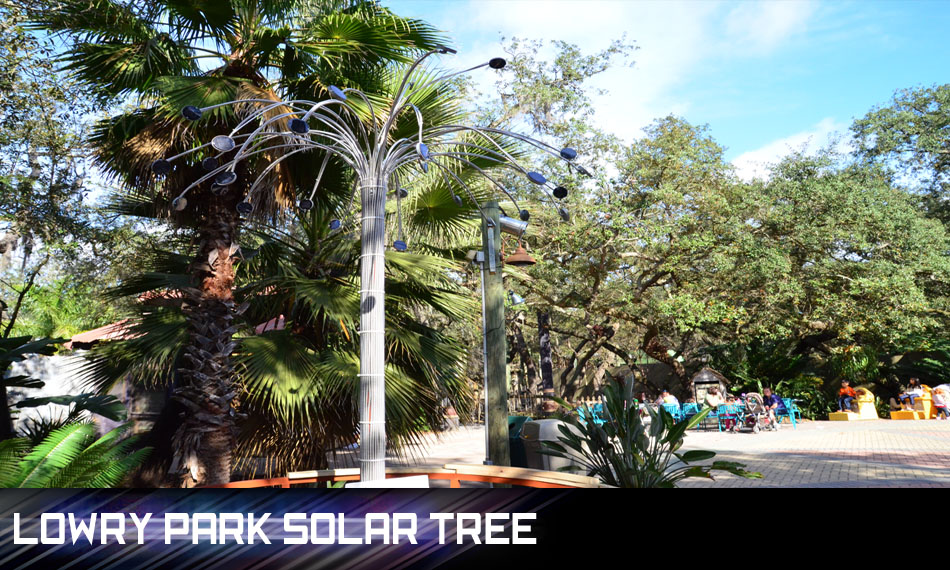 This Solar Tree is located in Lowry Park Zoo's African distric. o8o Studios designed and built the tree. It was made to show the power of photovoltaic cells.